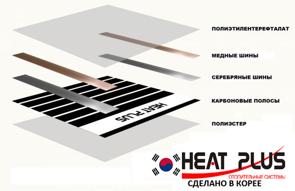 Инфракрасная отопительная пленка Heat Plus состоит из безопасных и экологически чистых материалов и представляет собой пленку толщиной всего 0,338 мм, состоящую из 5 технологических слоев (в отличие от аналогов, которые состоят из 2-3 слоев).